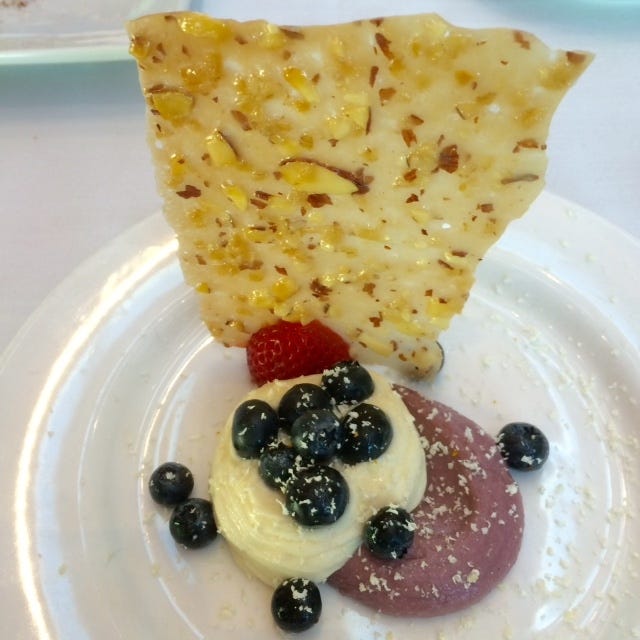 Dinner at Eleven at Crystal Bridges was another impressive meal. It started off with the most wonderful ceviche with avocado, fresh greens and more of those fragile, fragrant local strawberries.....