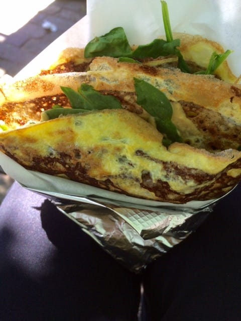 Lunch was at Crepes Paulette, a little cart in the center of town that is achingly popular. The line stretched on for 45 minutes. Le Jardin was worth the wait: the buckwheat crepe was filled with melted cheese, spinach, mushrooms and tomatoes. Even on a 100 degree day, I ate every bite.