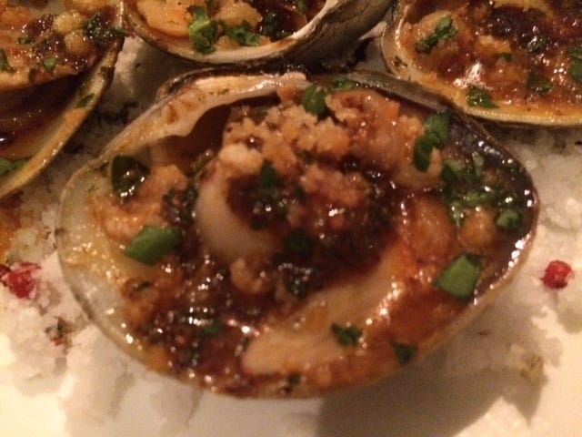 I began with dinner at The Hive in the very hip 21 C hotel, whose lobby smells so enticingly of wood smoke you are drawn, irresistibly, into the restaurant. One of the dishes that emerges from the wood-burning oven are these spectacular clams with citrus, chili and breadcrumbs - a rural interpretation of the usually urban clams casino. Loved them.