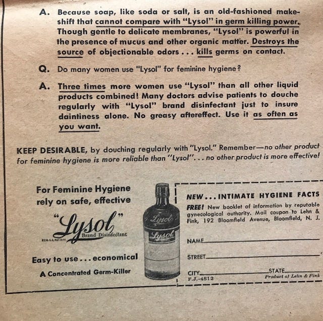 And that ad above from the December 1946 issue of Farm Journal. Now, at least, we know where the term "douche bag" comes from.