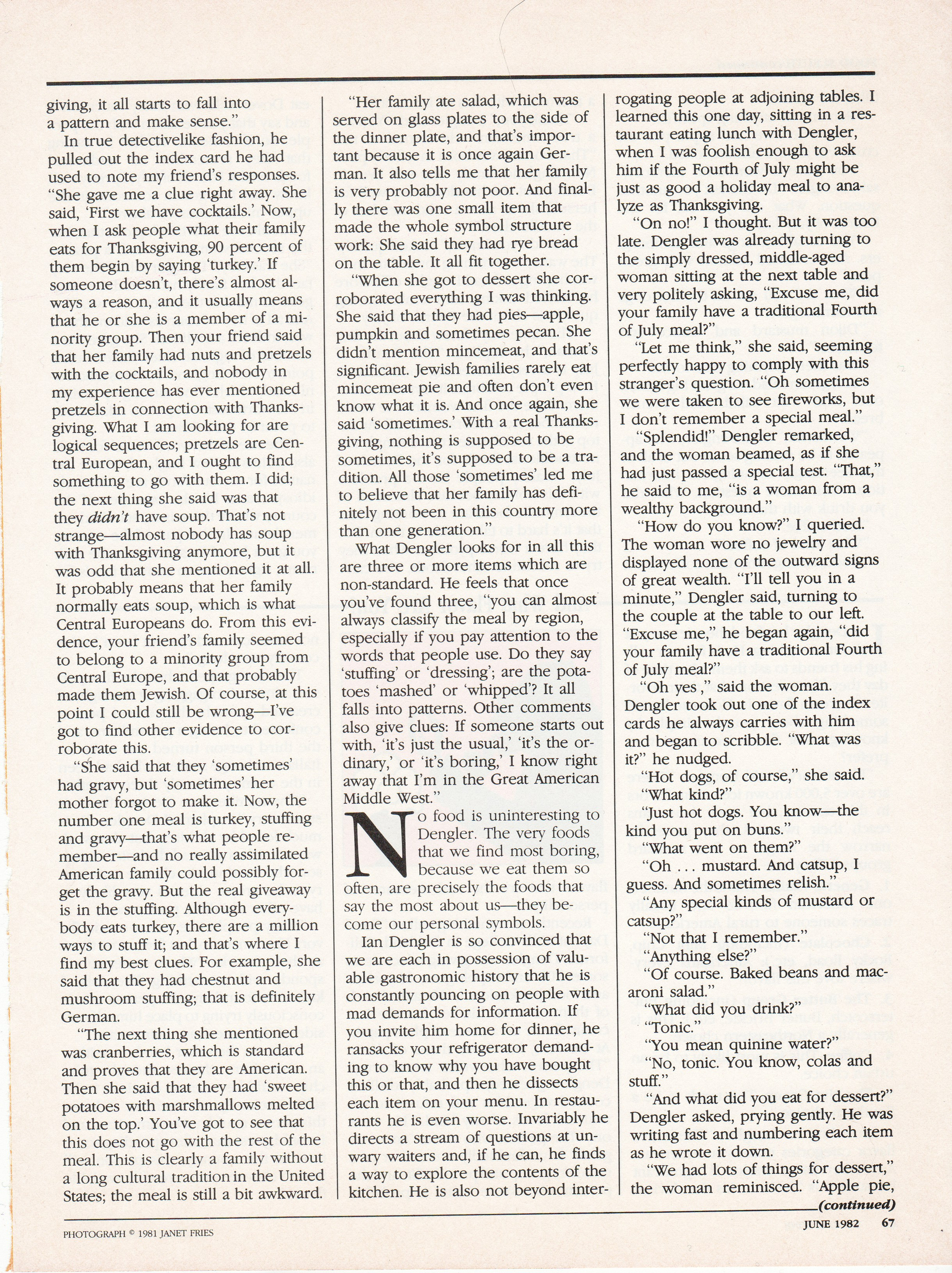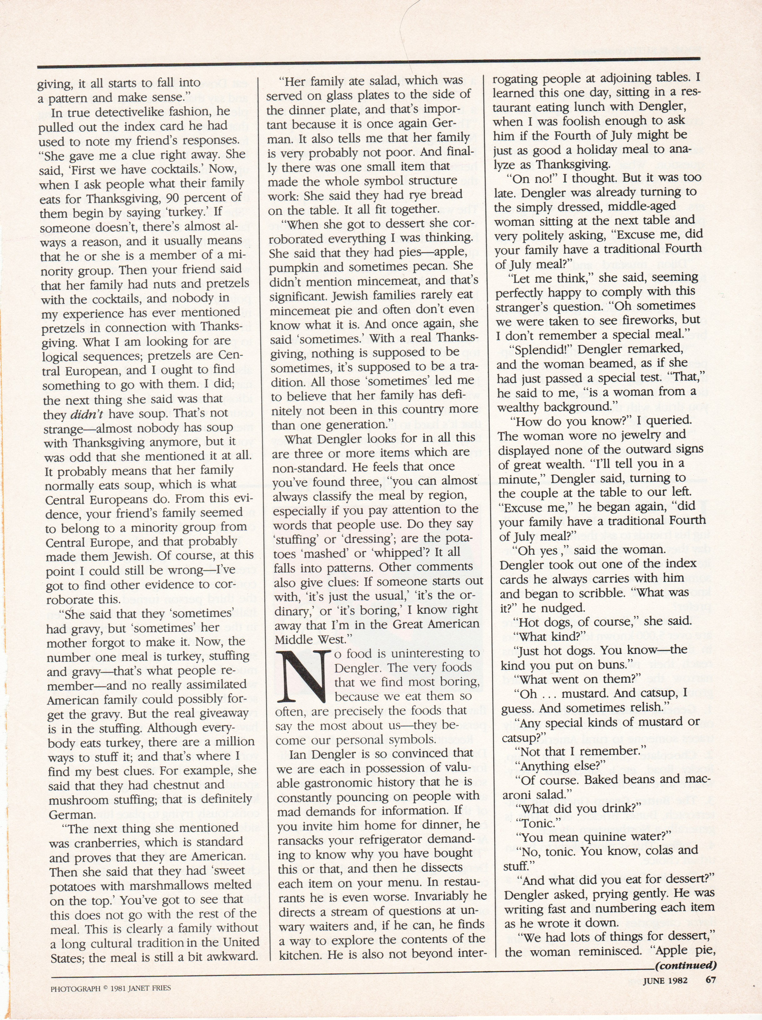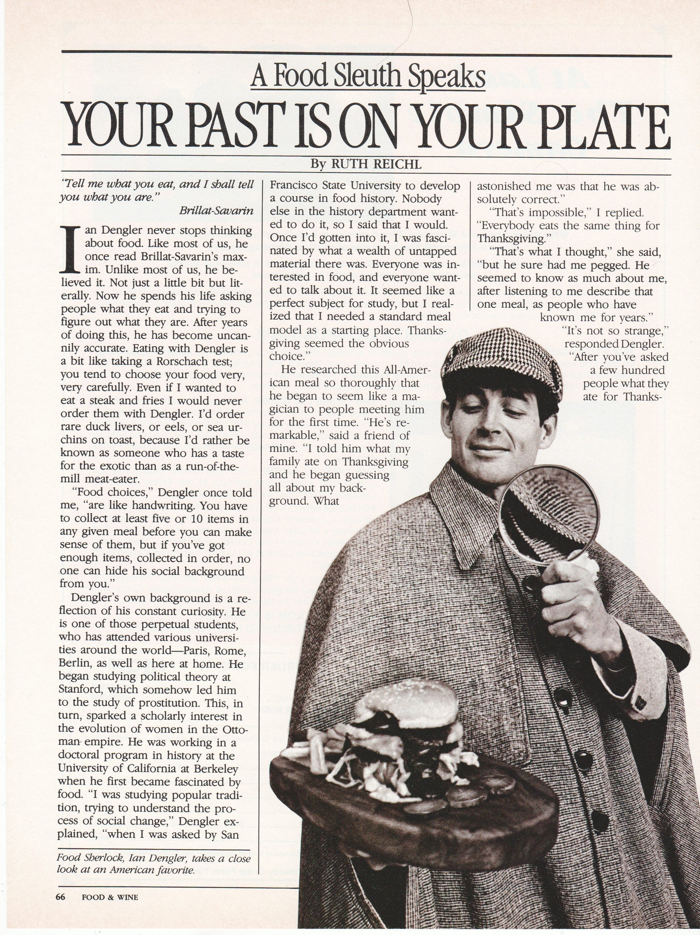 When I met Ian Dengler in the late seventies he absolutely fascinated me. I had always believed that food choices were like handwriting - a secret way of getting to know someone - but as he focused on the semiotics of food, he proved it.