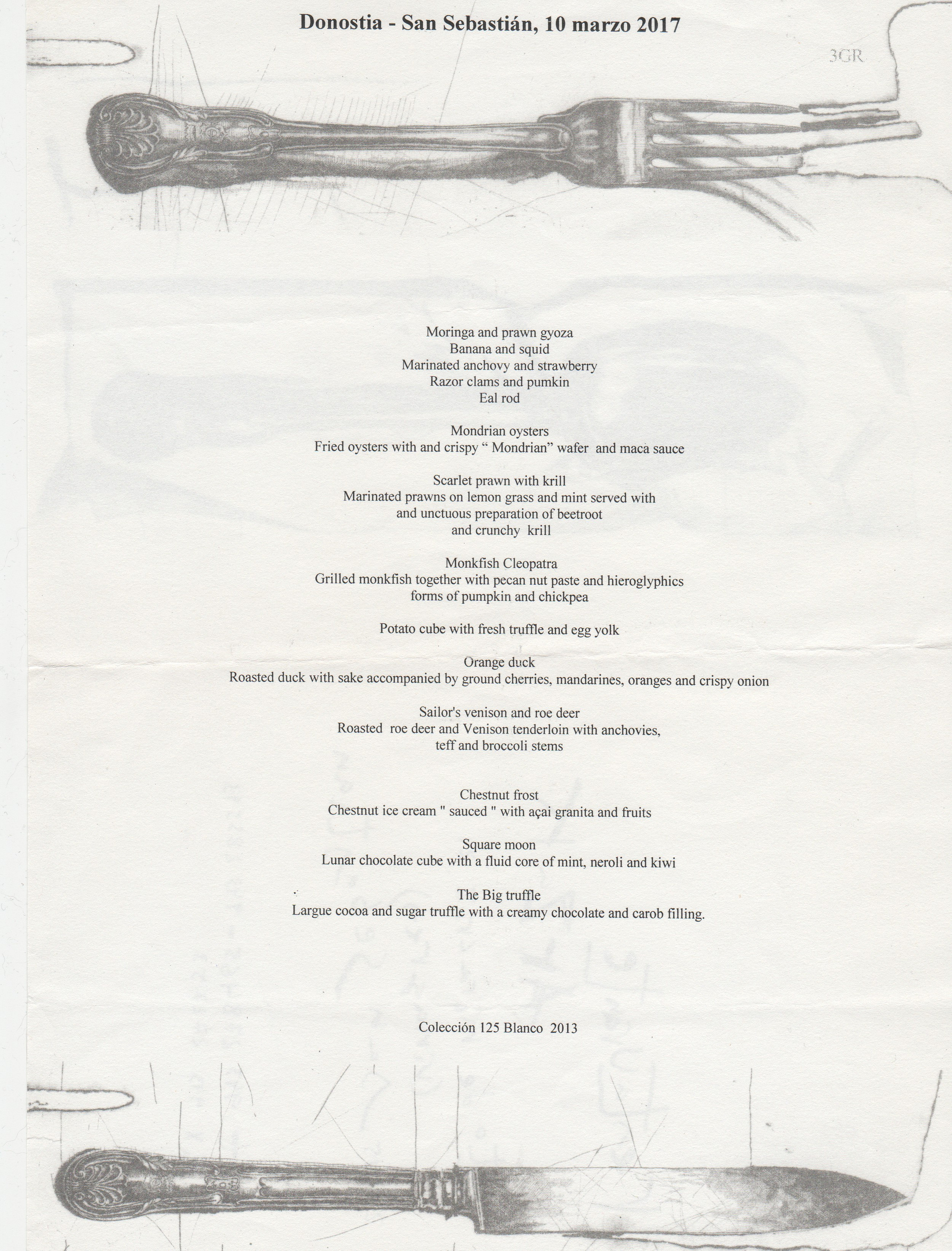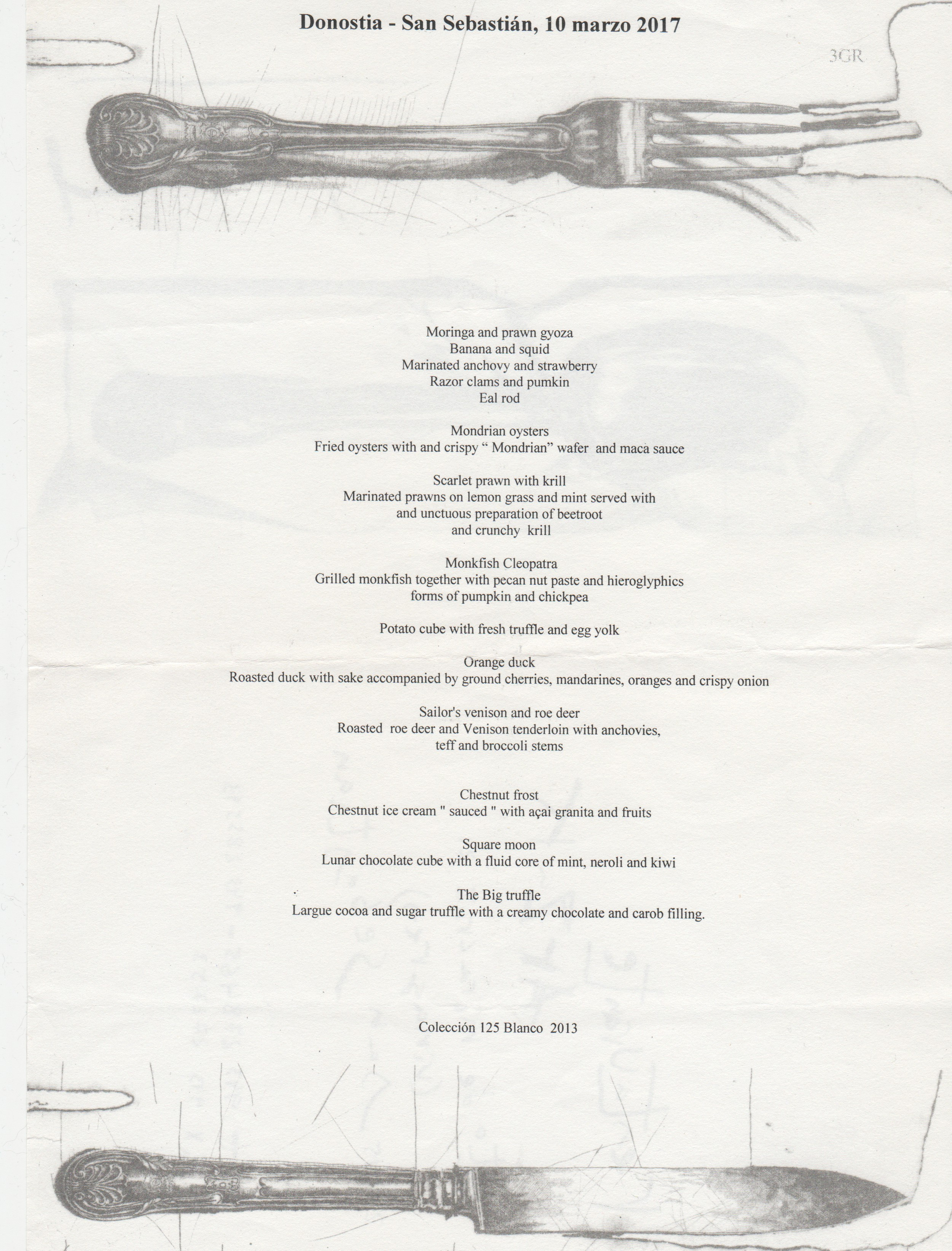 I had one of the best meals of my life at Arzak in San Sebastian, which is the only 3 Michelin star restaurant I would describe as cozy. (Many days you can walk through the kitchen and see the entire family sitting down for dinner.) I recently pulled the menu out because I’ll be returning this fall and taking a group of friends along. If you’d like to join us, the information is here.