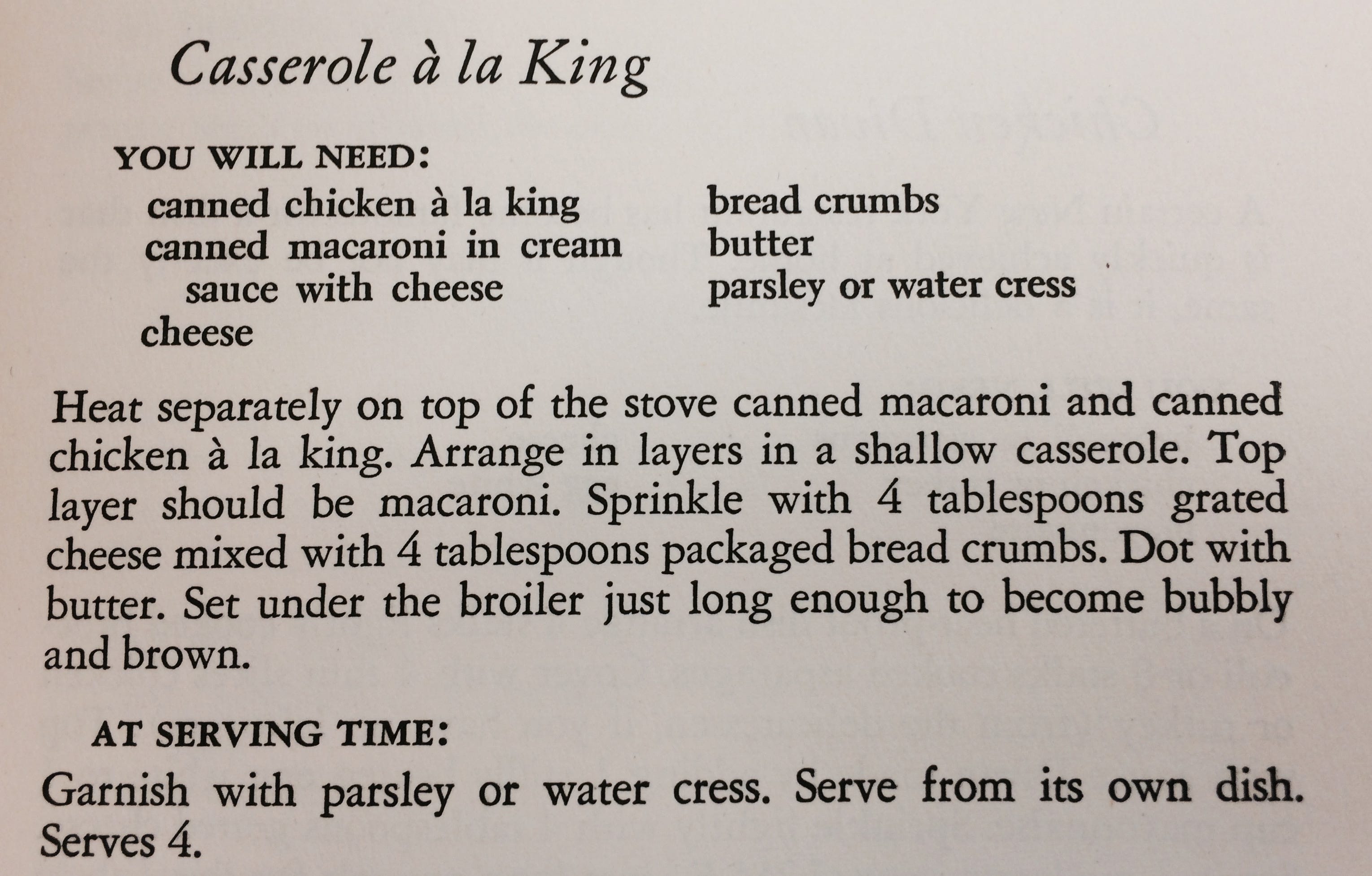 My mother treasured Poppy Cannon's Can Opener Cookbook, which was first published in 1951. Mom bragged that she could "have dinner on the table in less than ten minutes." No wonder, with dishes like this one.
