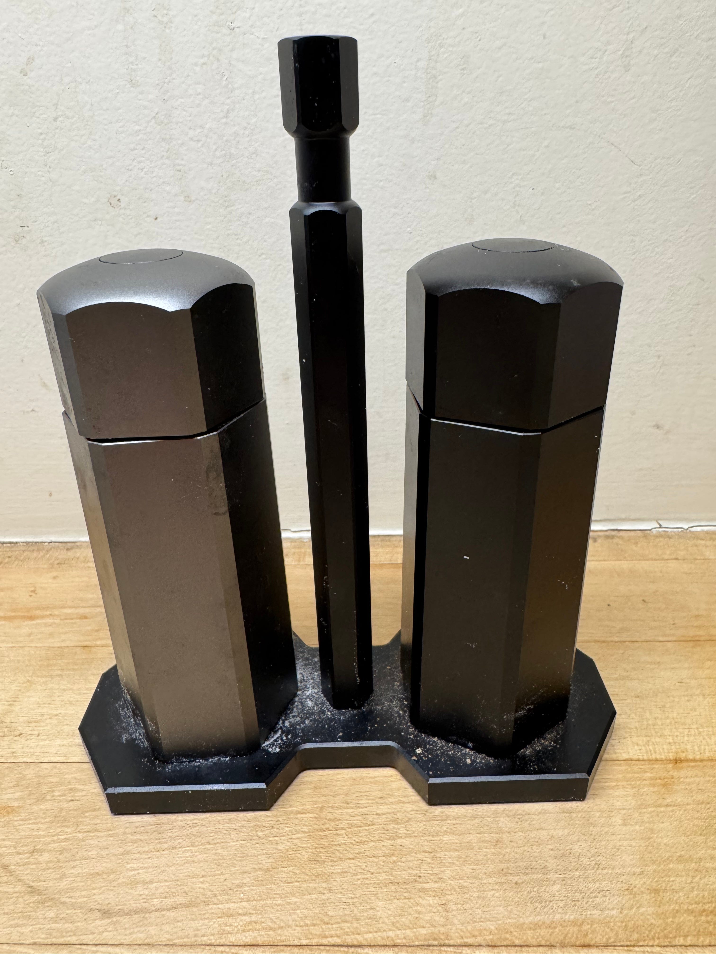 It’s easy to find lovely salt shakers for your table, but finding a pepper grinder small enough to sit sedately on your table is not easy. That’s one reason I’m so happy to have found this Hexmill Tabletop Salt and Pepper set. They’re easy to fill, easy to use (they turn so smoothly), and best of all, the grind is incredibly even.