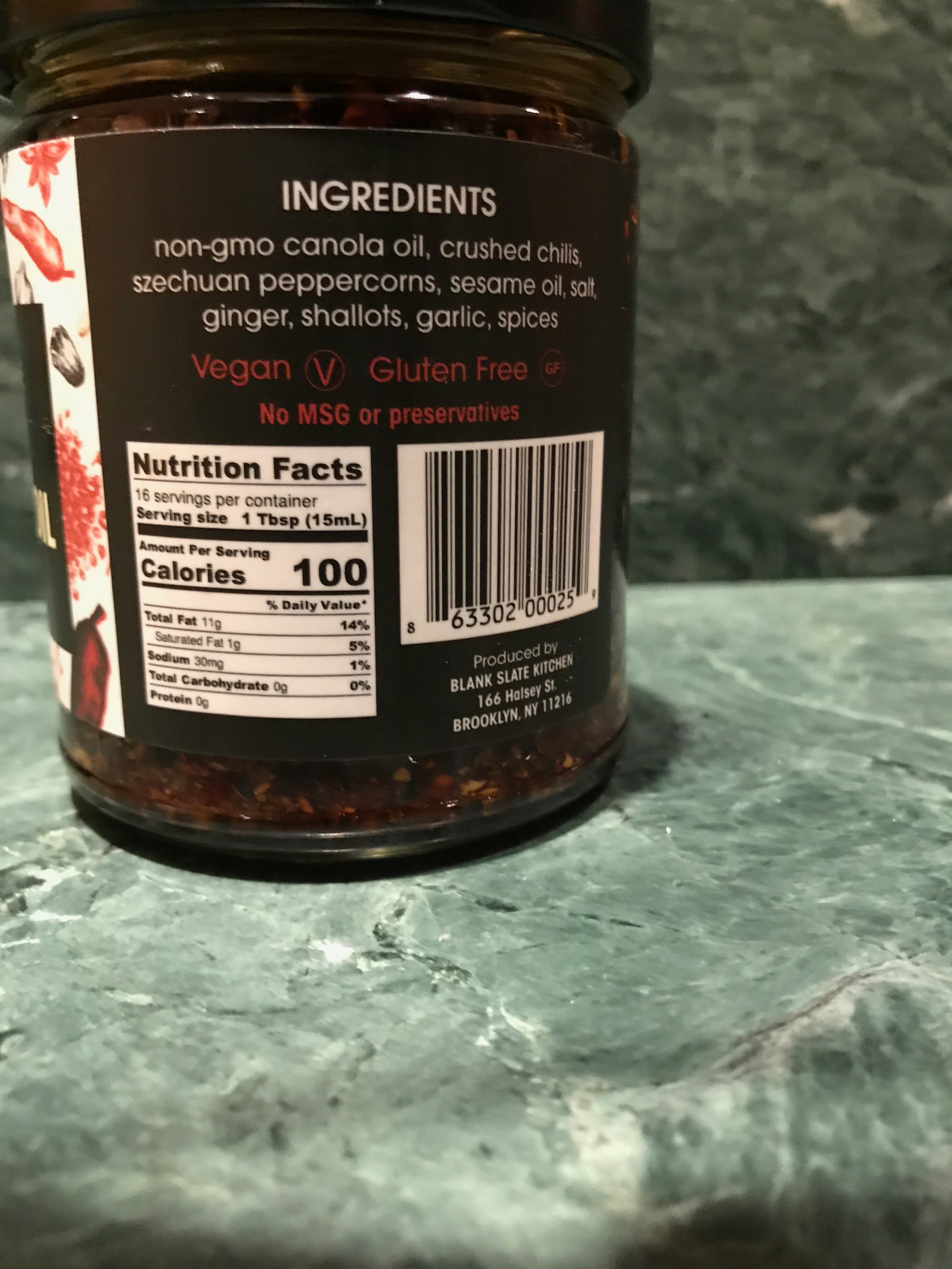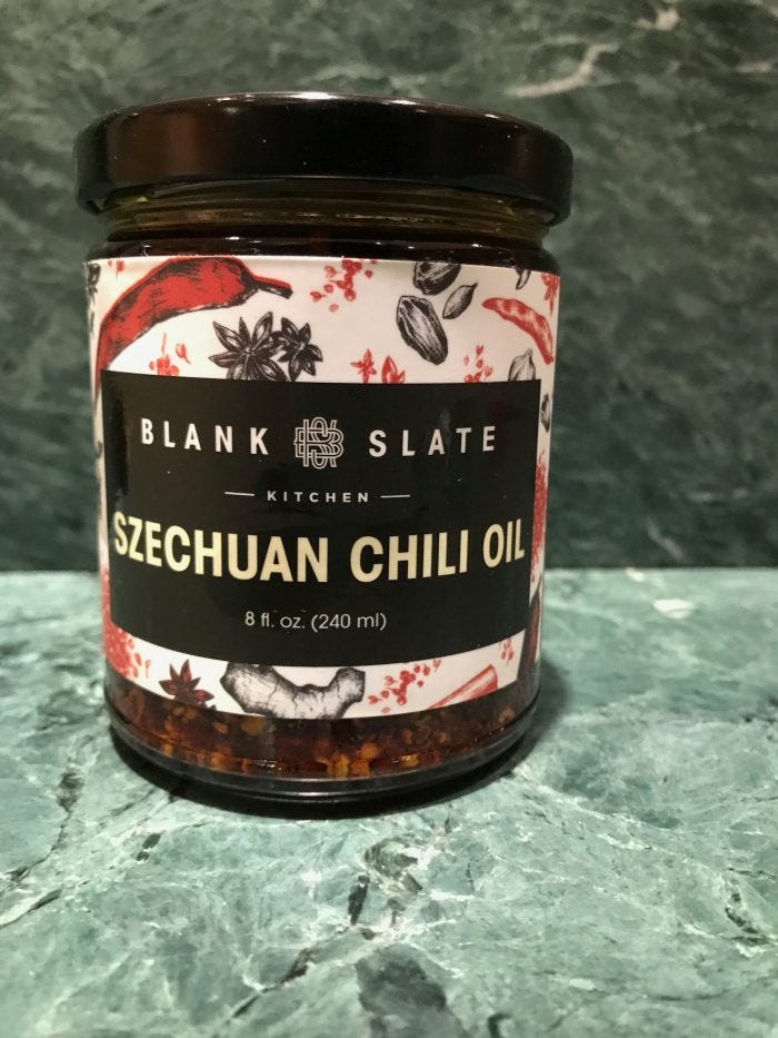 This Blankslate Szechuan Chili Oil, with its intriguing, slightly gingery zip, is the answer. I keep it in my refrigerator to perk up just about everything from Ma Po Tofu to steamed spinach. It's made in Brooklyn, and if you live in New York State it's pretty easy to find. It's also easily available online.