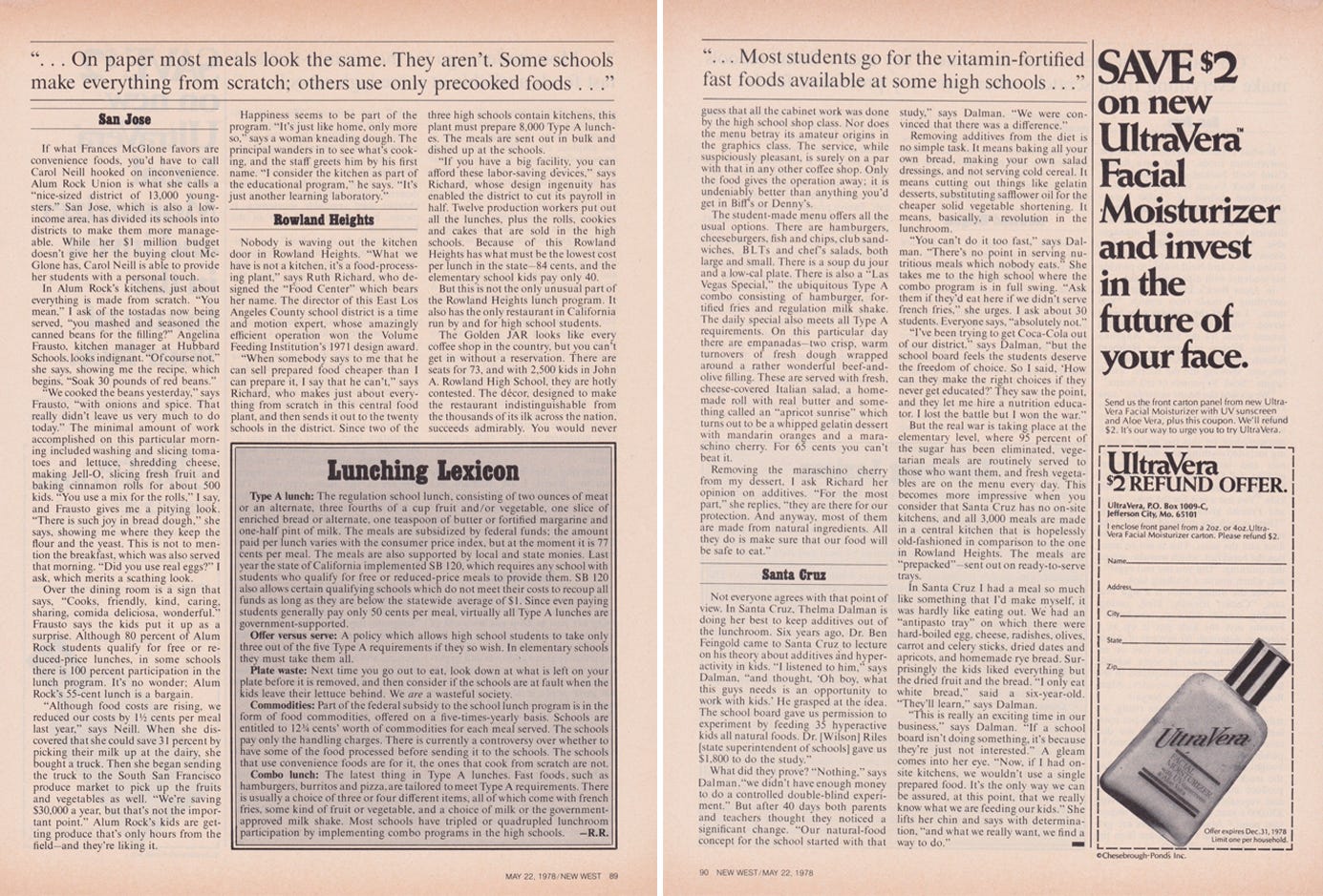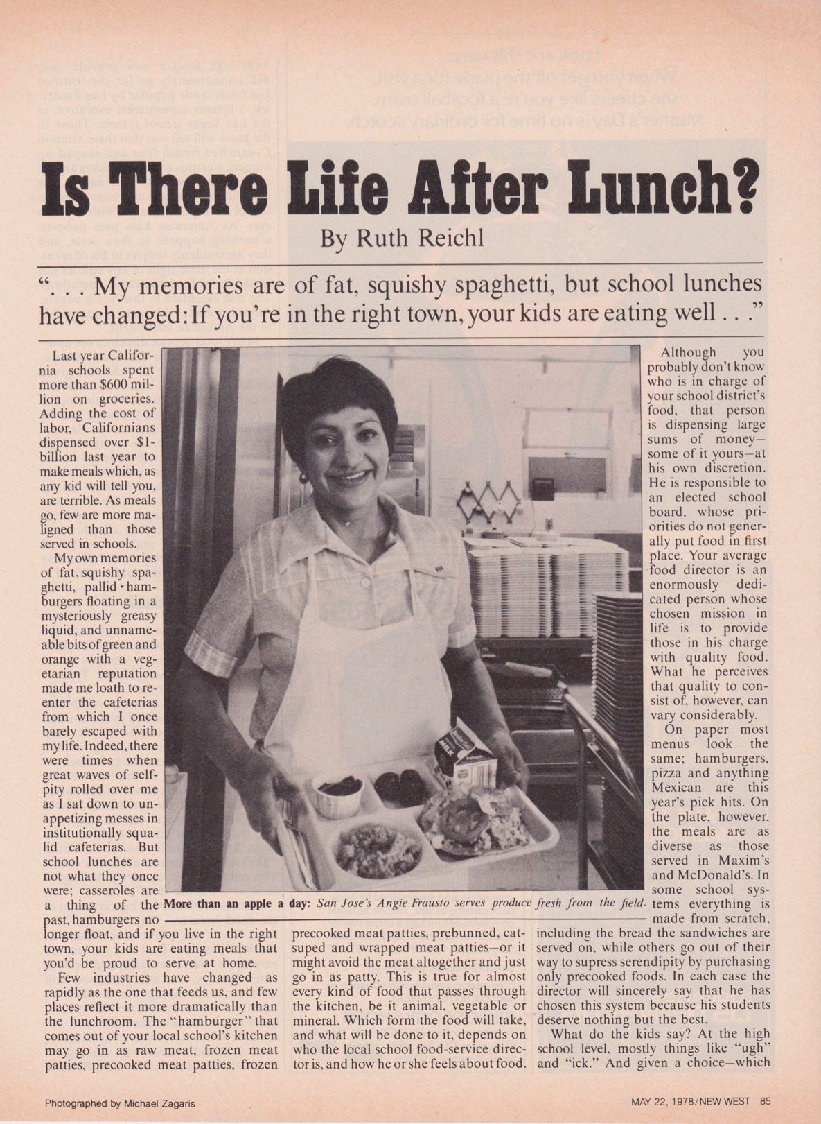 How did I talk my editors into letting me write a piece about school lunch in 1978? I have no idea. This was, after all, long before Alice Waters made school food a national issue. But I find it fascinating that every issue that has dominated food debates during the ensuing years comes up in this ancient article.