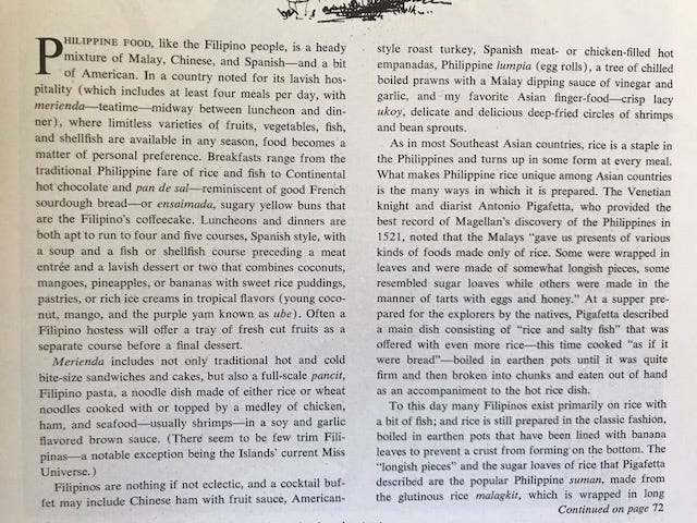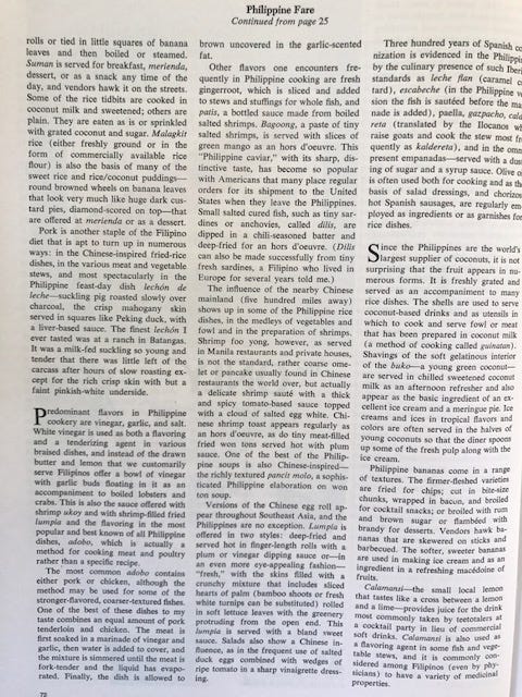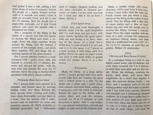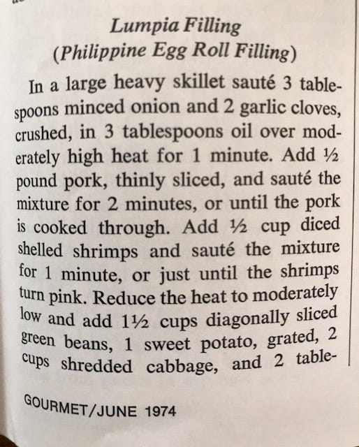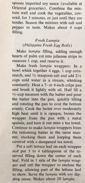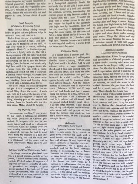 It was also a time when the food of the Philippines seemed wildly exotic. Today it's all the rage - so if you're in the mood for lumpia and empanadas, here are a few recipes.