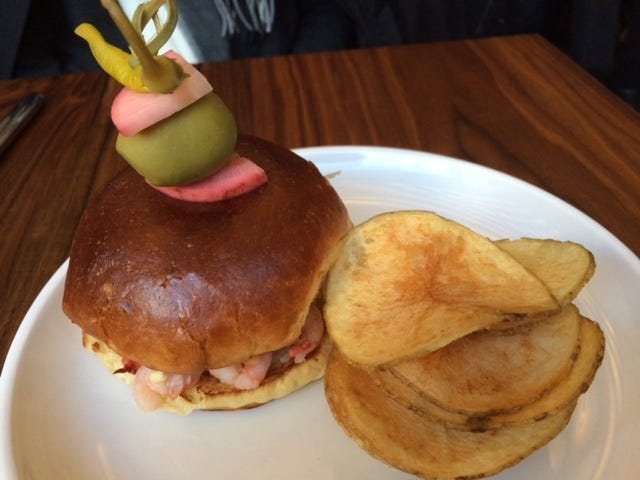 Spicy shrimp roll on brioche.
