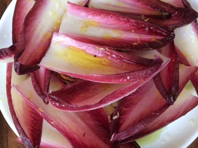 Purple endive. Pecans. Bayley Hazen blue cheese.