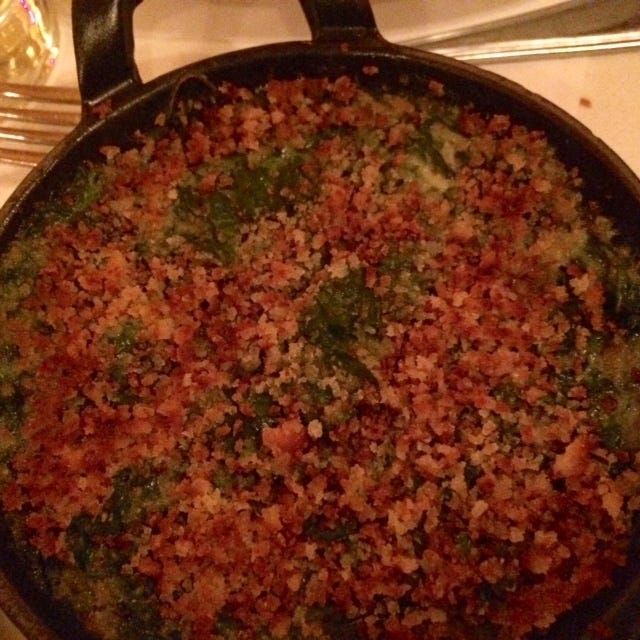 But should I really admit that what most won my heart was the spinach, with its herbed crumbs and gruyere?