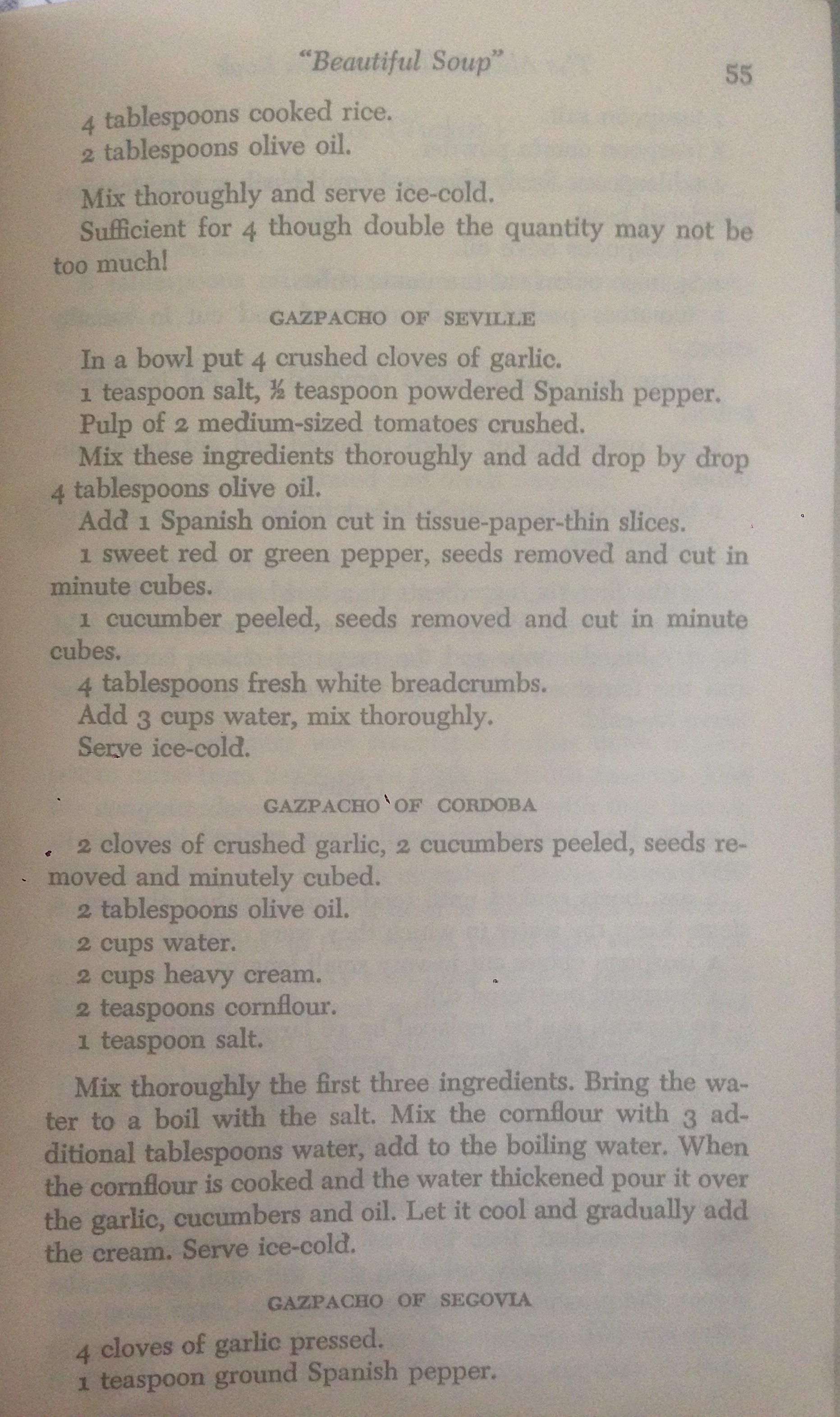 An accomplished French cook, she was also interested in the ways of others; her cookbook includes a chapter of recipes from various servants, recipes from famous friends (Picasso, Picabia), and an entire section on cold soup.