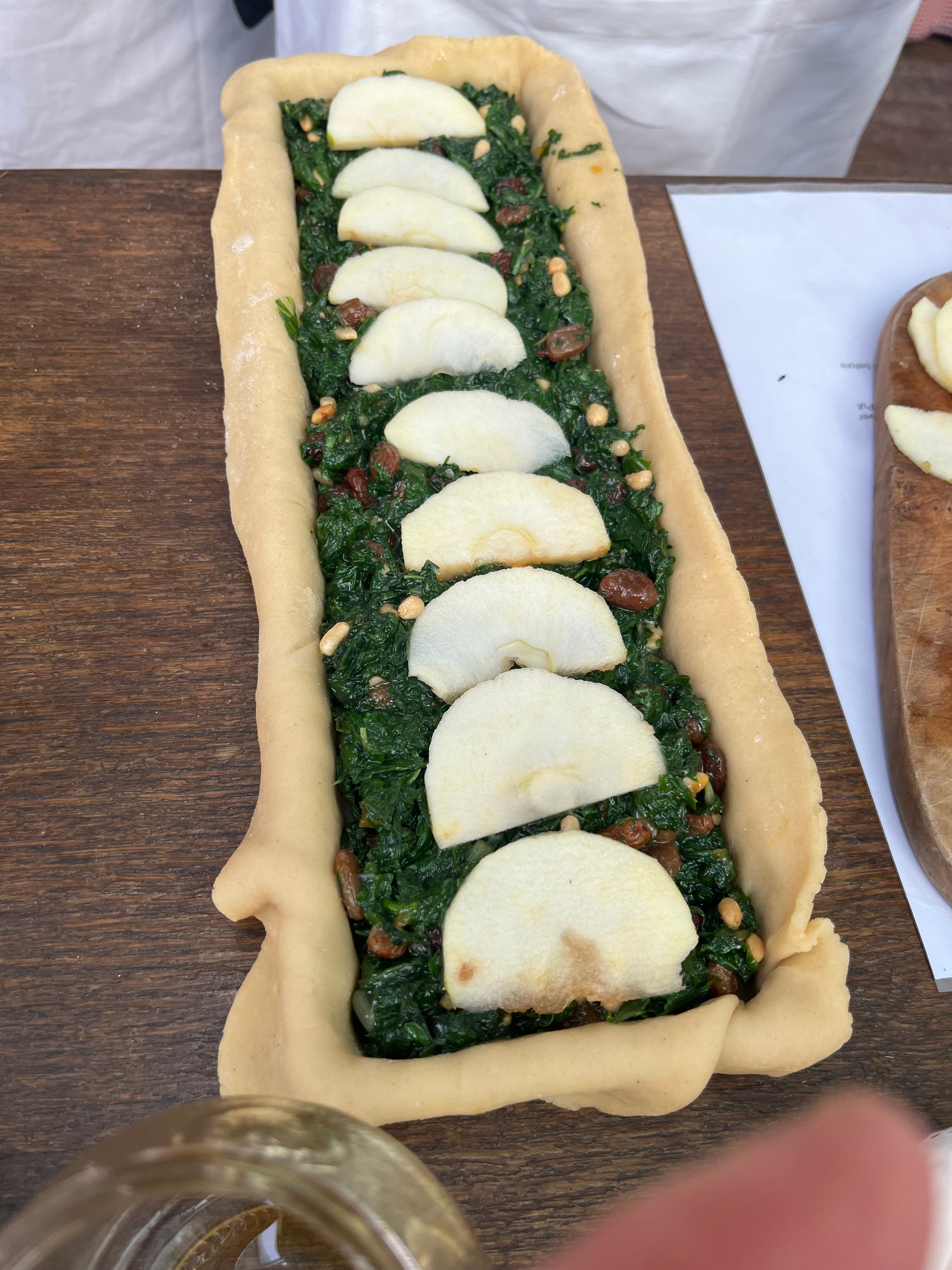 We were making a Nicoise classic, a sweet chard pie.