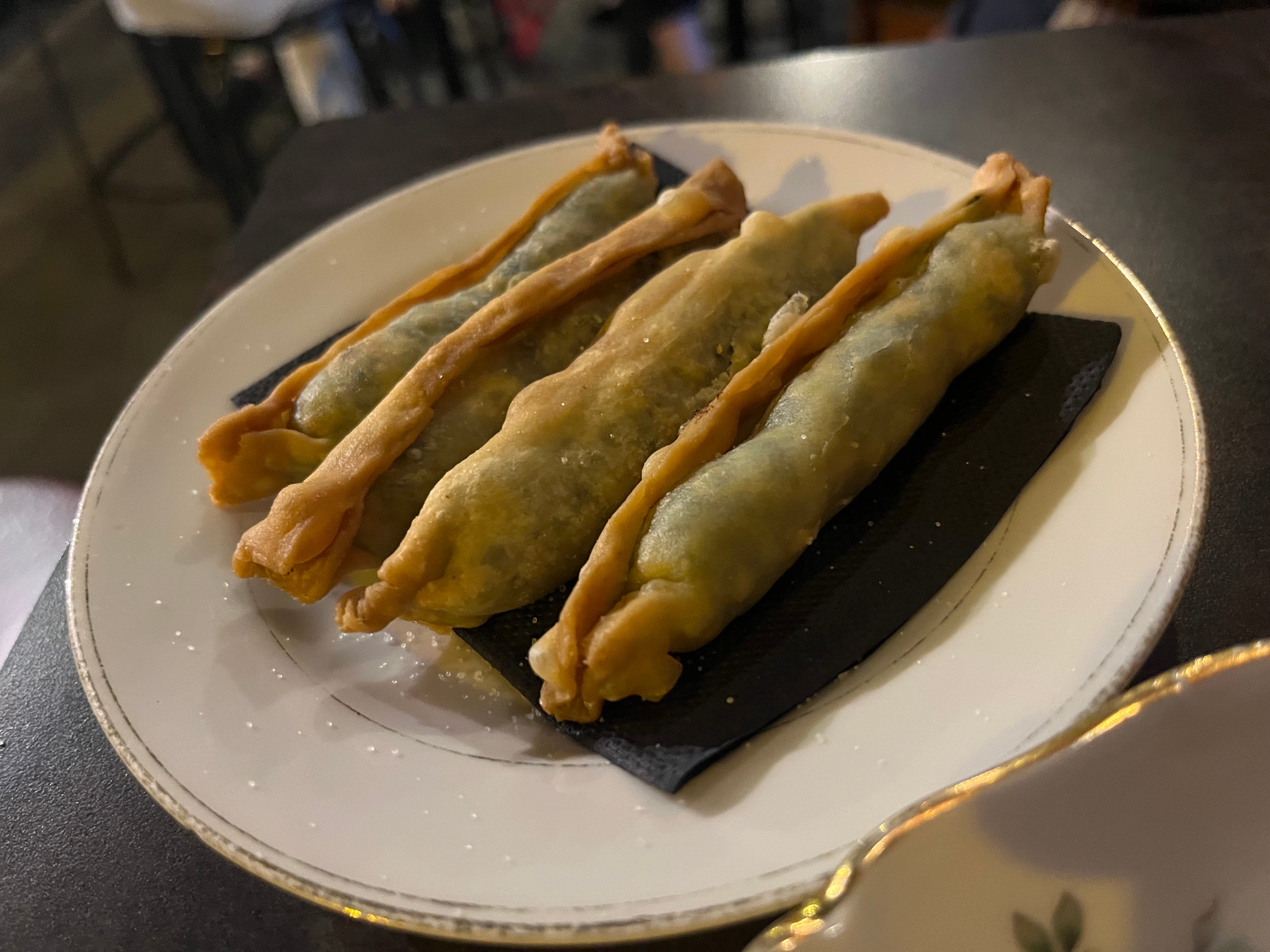 The classic local dish, barbajuan made mostly of chard.