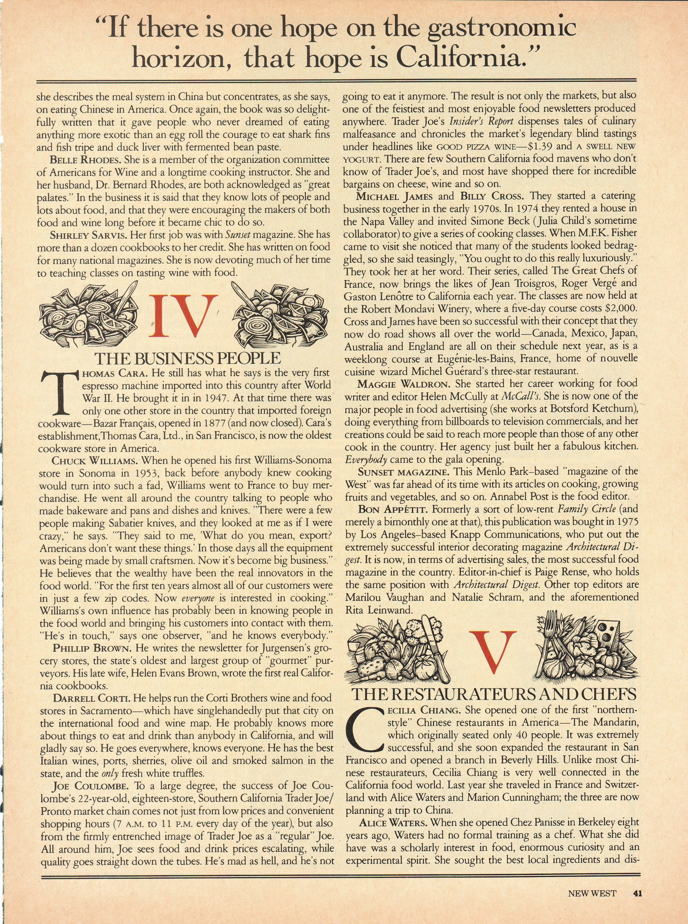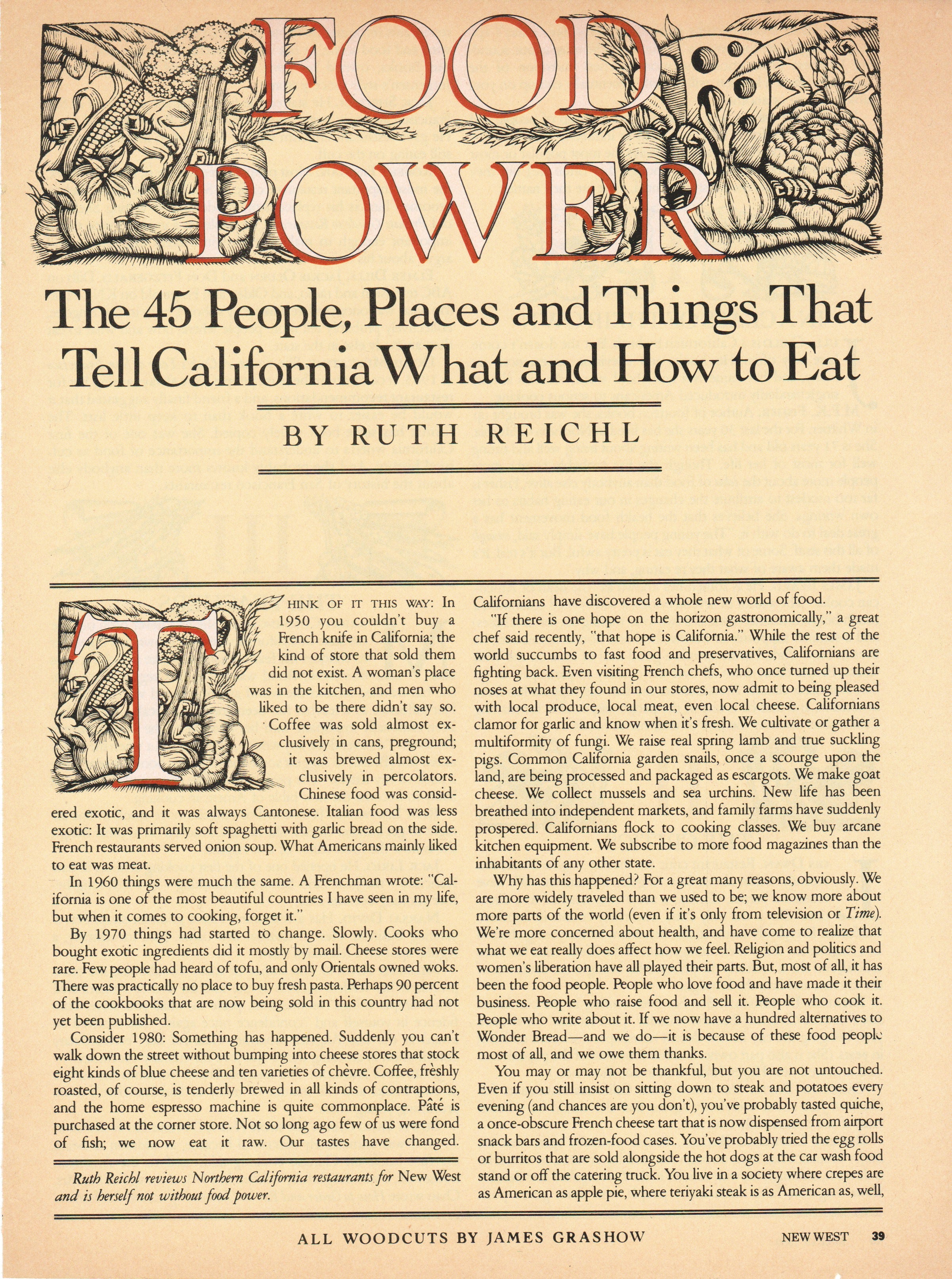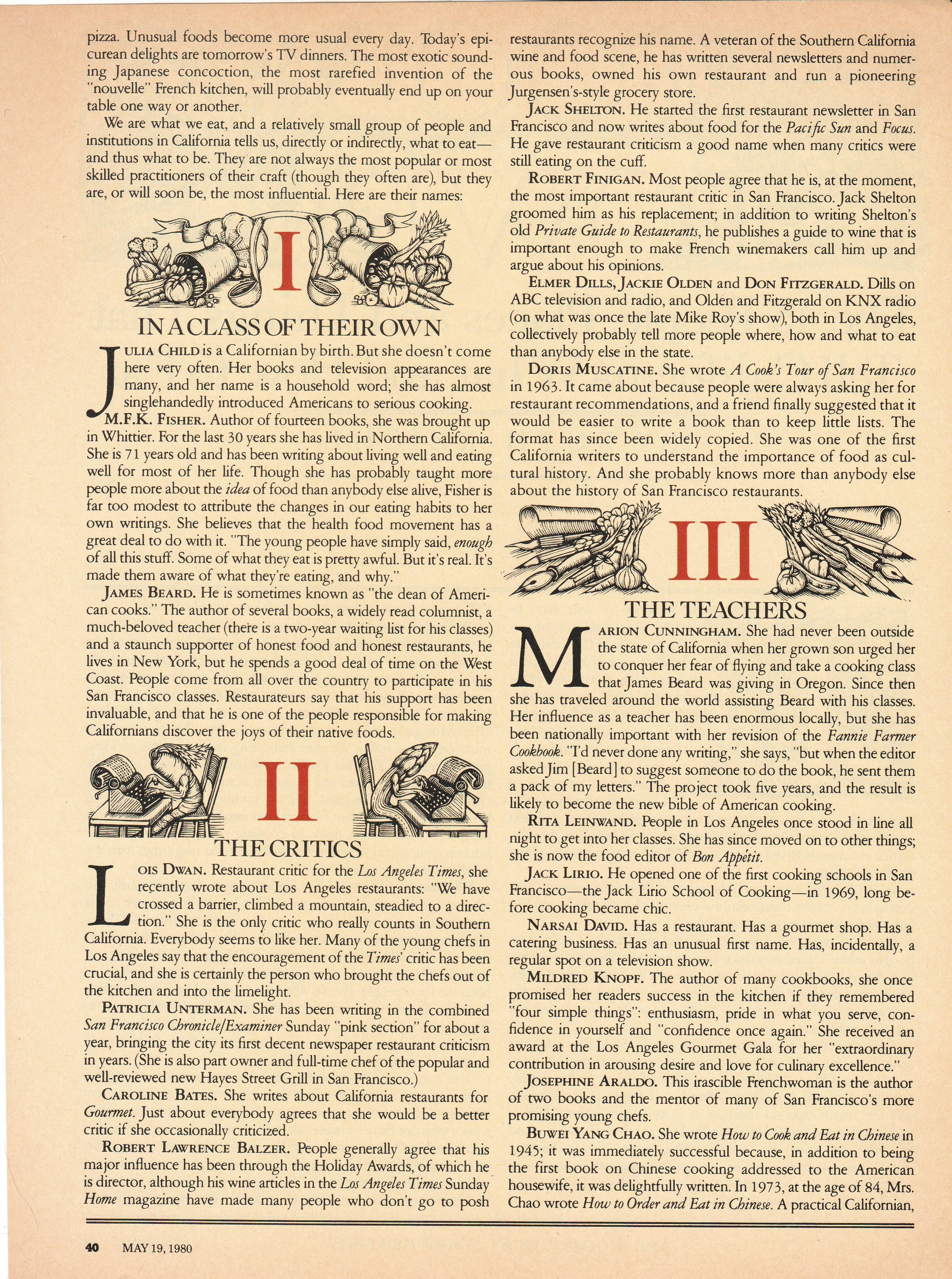 Thanks so much for reprinting the article from 1980. It summed up far better than I could have the sorry state of American (even California) food in the 50s and 60s, and the rapid transformation it underwent before my first son was born in 1988.