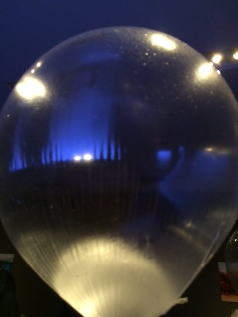 A balloon made of green apples and helium, that turns every diner in the place into an instant child.