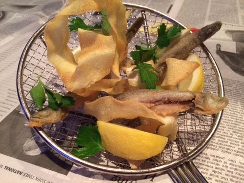 which brings us right back home. We're solidly in Chicago now, eating lake Michigan smelt. To drink: a sparkling Riesling Brut Sekt from Von Buhl.