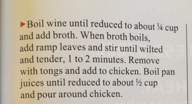 In the article Bishop suggests chopping ramp leaves, stir-frying them in olive oil and serving them on pasta. Gourmet's cooks, however, had a couple of better suggestions.