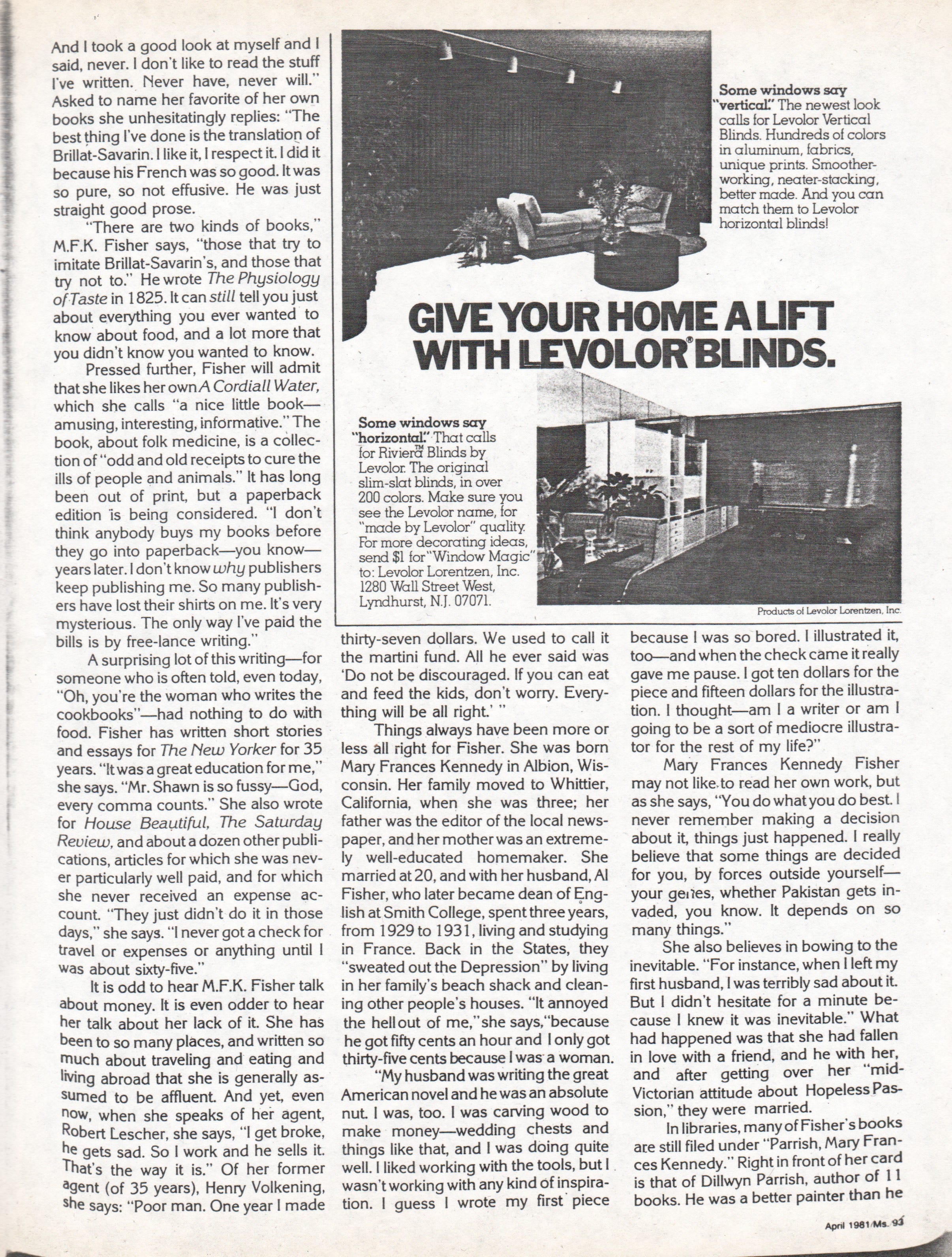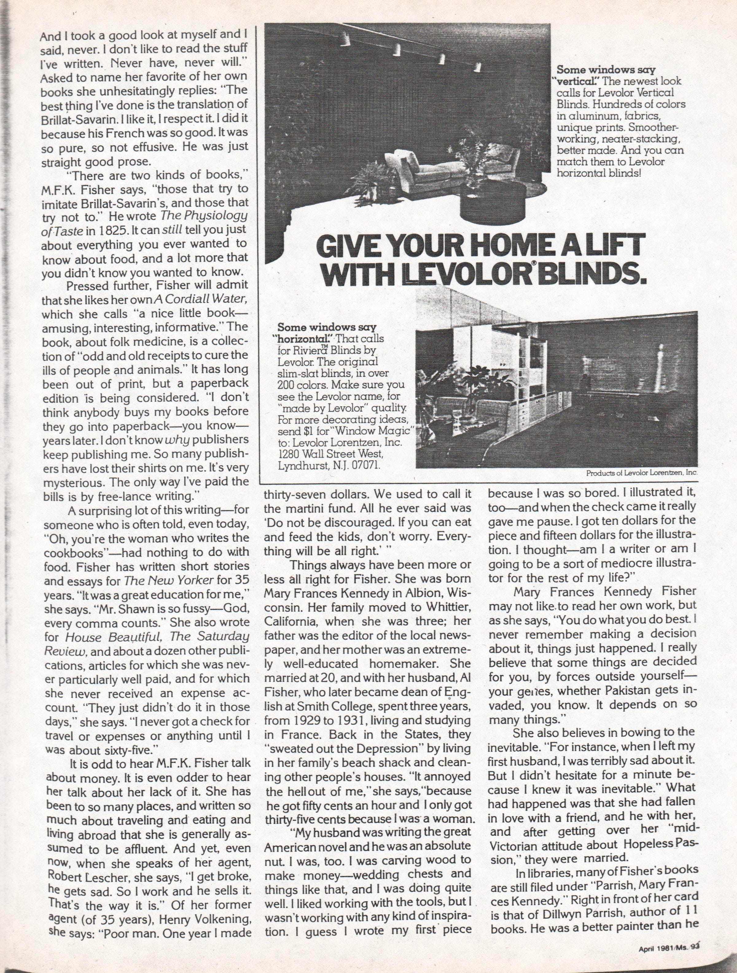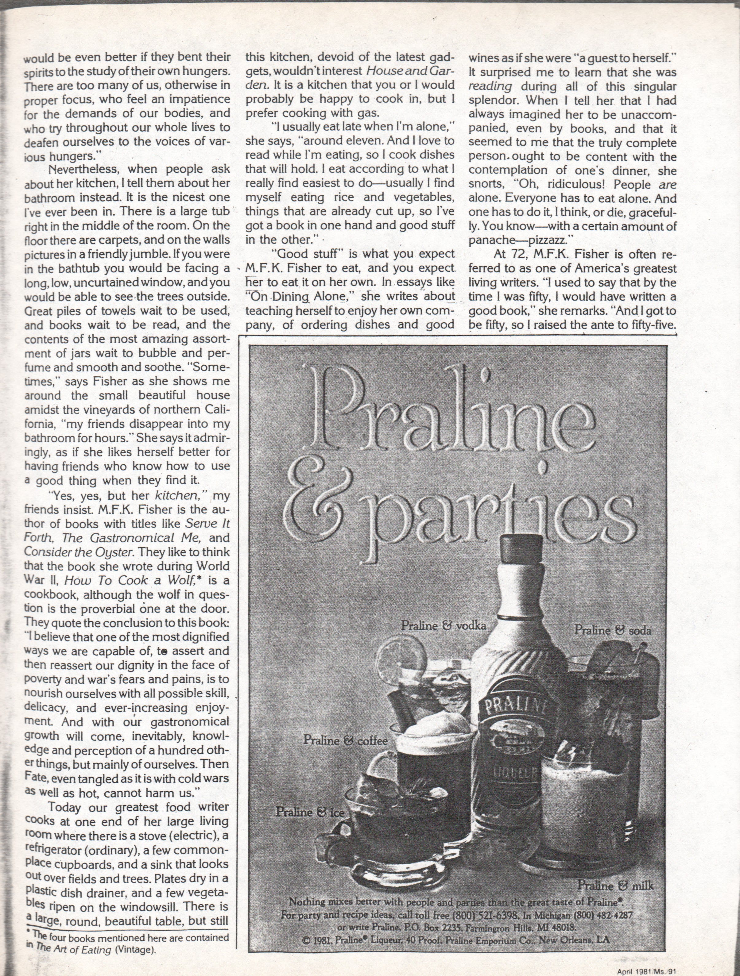 Here’s the Ms. article. If you’re interested in reading one of my more mature articles about MFK Fisher, you can find it here.