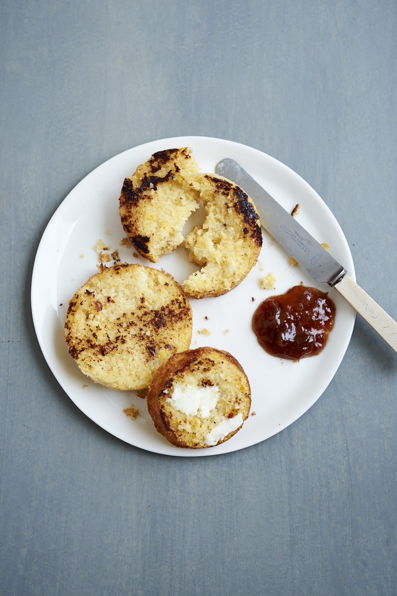 I like these best served the way they were in old New York coffee shops: split horizontally, brushed with butter and toasted on a griddle or in a pan.