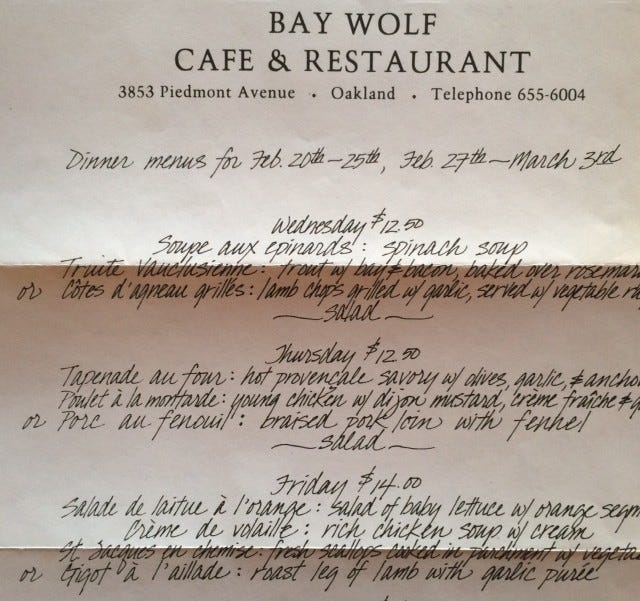 The final menu on the Bay Wolf website is from August. It must have been the last supper.