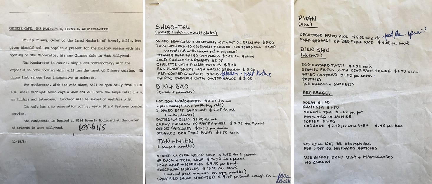 LOVED Mandarette! Thank you for sharing your memories. Truly appreciate these food stories of back in the day in LA. Loved the story on Spago too.