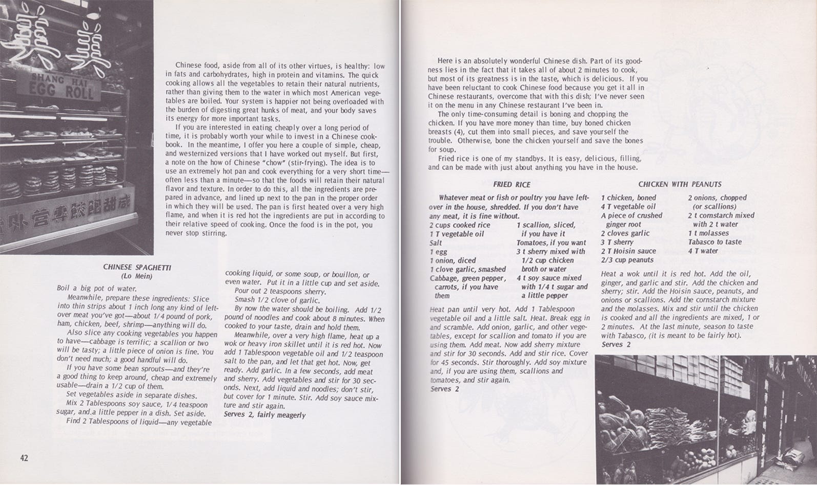 Do NOT use these recipes. Today you can find much better versions in any number of places. But I offer these recipes from my own 1972 cookbook to illustrate how very much things have changed. Should you want a real version of chicken with peanuts, I suggest gong bao chicken with peanuts from Fuchsia Dunlop.